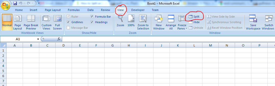 Excel 2007 – Split Pane