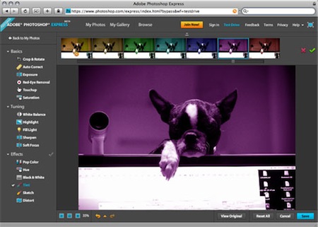 Adobe actually has a free web based photo editor of their own. It has all the basic functionality you’d expect as well as a few advanced features (sadly though, no layers), and interfaces well with a number of photo sharing websites. Again, completely cross platform.
